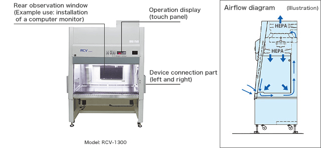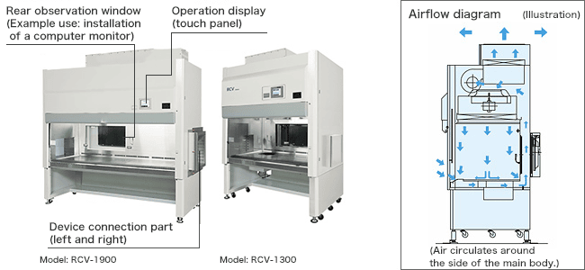 A garbage chute (waste container) and a cell observation device can be installed (garbage chutes cannot be installed in RCV-1300.)