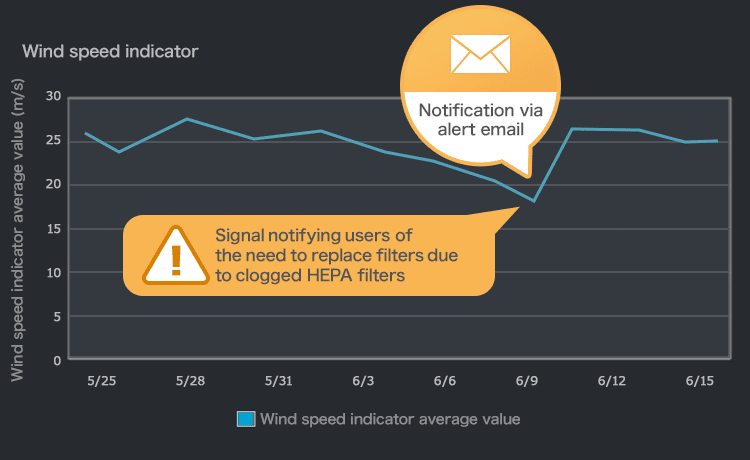 - Records and outputs warning for abnormalities with status monitoring and upper/lower limit monitoring