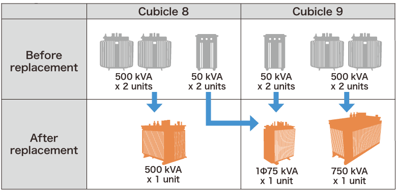 Replacement with high-efficiency amorphous transformers to achieve further energy saving effect